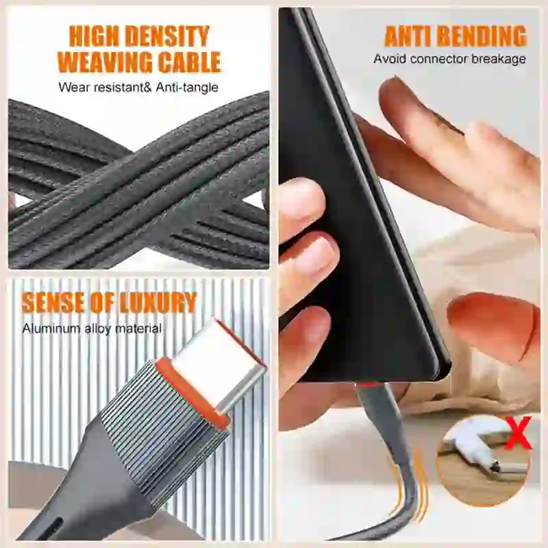 این کابل برای جلوگیری از گره خوردن از روکشTPE استفاده شده است که با سطح زنبوری به کار رفته خیالتان را راحت می کند.