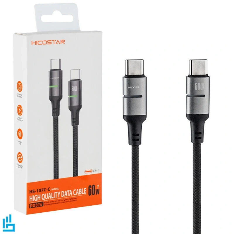 شارژ سریع و توان خروجی 60 وات کابل شارژ تایپ سی به تایپ سی هایکو استار HS-107 HICOSTAR طول 1 متر