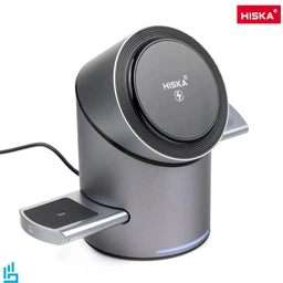 این فناوری پیشرفته، سرعت شارژ دستگاههای سازگار را به طرز قابل توجهی افزایش میدهد. با این ویژگی میتوانید زمان کمتری را صرف شارژ کردن گوشی یا تبلت خود کنید.شارژر هیسکا HR16 توانایی ارائه توان خروجی تا 15 وات را دارد و میتواند به صورت همزمان سه دستگاه را شارژ کند. این ویژگی آن را به گزینهای ایدهآل برای خانوادهها یا افرادی که دستگاههای متعددی دارند، تبدیل میکند.این شارژر دارای سه درگاه خروجی است که امکان شارژ همزمان موبایل، تبلت، ساعت هوشمند و هندزفری بیسیم را فراهم میکند. شما میتوانید بدون نیاز به کابلهای اضافی همه دستگاههای خود را به صورت بیسیم شارژ کنید.این دستگاه برای شارژ انواع دستگاههای هوشمند از جمله گوشیهای اندروید و iOS، ساعتهای هوشمند و هدفونهای بیسیم طراحی شده است.ویژگی شناسایی خودکار این دستگاه، ولتاژ و شدت جریان مناسب برای هر دستگاه را تشخیص میدهد و خطر آسیب به باتری را به حداقل میرساند.طراحی هوشمند این شارژر به گونهای است که در زمان عدم استفاده از دستگاهها به حالت آماده به کار میرود و مصرف انرژی را به شکل قابل توجهی کاهش میدهد.برای افزایش عمر مفید این دستگاه، بهتر است آن را در محیطی خشک و خنک نگهداری کنید و از اتصال به پریزهای نامطمئن خودداری کنید.این شارژر با تمامی دستگاههای دارای استاندارد Qi و فناوری شارژ سریع سازگار است و به راحتی میتوان از آن برای دستگاههای متنوع استفاده کرد.