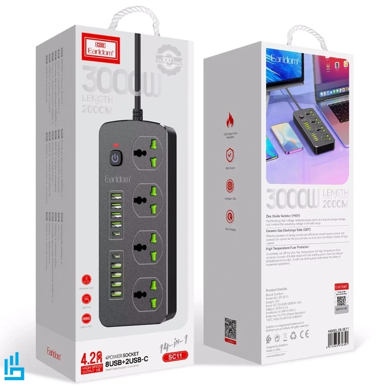 چندراهی برق هوشمند ارلدام مدل ES-SC11 یک انتخاب بسیار هوشمندانه برای کاربران حرفهای، اداری و خانگی است که به دنبال محصولی ایمن، پرقدرت، مجهز به شارژ سریع و دارای طراحی مقاوم هستند.