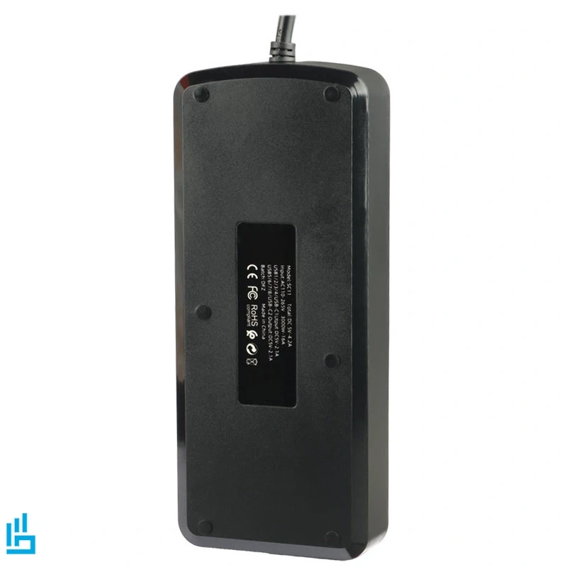 چندراهی ES-SC11 دارای 4 پریز برق با استاندارد EU است که به طور کامل با پریزهای برق ایران سازگار بوده و از دوشاخههای متداول پشتیبانی میکند.