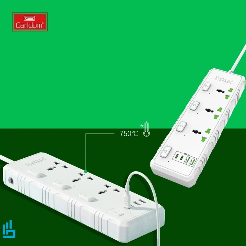 محافظت هوشمند با چیپست داخلی چندراهی برق USB دار ارلدام EARLDOM SC10