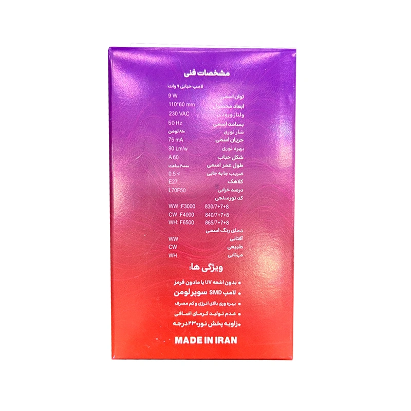 با مصرف تنها 9 وات، این لامپ توانایی روشنایی یک لامپ معمولی 60 وات را دارد، در حالی که هزینه برق بسیار کمتر است.