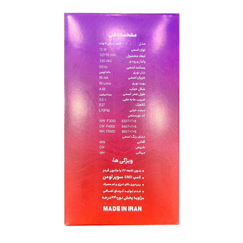 لامپ حبابی 12 وات PLI پرشین لایت با طراحی استاندارد، نور یکنواخت، طول عمر بالا و مصرف کم انرژی، گزینهای عالی برای روشنایی محیط است. اگر به دنبال یک لامپ اقتصادی، بادوام و بدون فیلیکر هستید، این محصول انتخاب مناسبی خواهد بود.