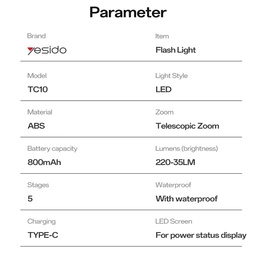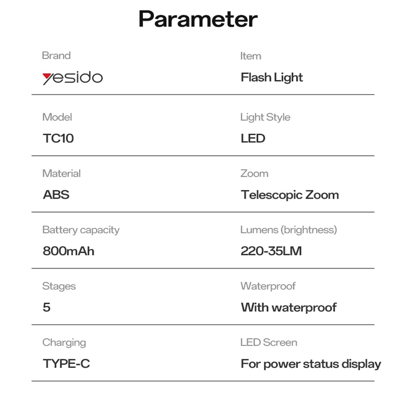 چراغ قوه شارژی Yesido TC10 ترکیبی از سبکی، مقاومت، شارژ سریع و نوردهی متنوع است. این چراغ برای طبیعت‌گردان، کمپینگ، کوهنوردان و حتی استفاده خانگی و نگهبانی مناسب است. وجود باتری داخلی، پورت Type-C، قابلیت زوم و نمایشگر LED، تجربه کاربری راحت و مطمئنی را فراهم می‌کند. اگر به دنبال چراغ قوه‌ای جمع‌وجور، مقاوم و پرکاربرد هستید، TC10 گزینه بسیار مناسبی است.