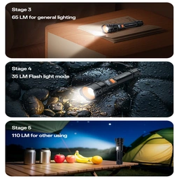 یکی از ویژگی‌های جذاب این چراغ، 5 حالت نوردهی است. شما می‌توانید نور را از حالت کم برای مطالعه یا فضای نزدیک تا نور زیاد برای روشن کردن مسیرهای دور یا محیط‌های باز، تنظیم کنید.