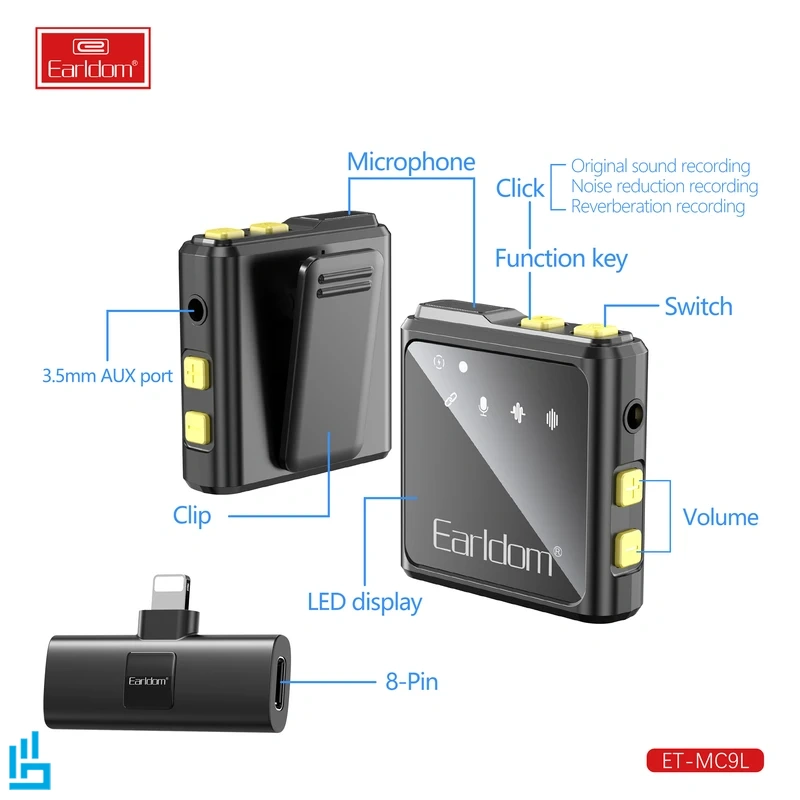حساسیت صوتی بالای میکروفون بی سیم یقه ای لایتنینگ ارلدام EARLDOM MC9L