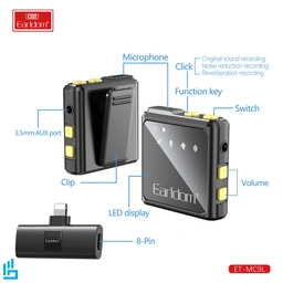 راه‌اندازی آسان میکروفون بی سیم یقه ای لایتنینگ ارلدام EARLDOM MC9L