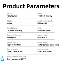مشخصات نمایشگر مانیتور و دوربین خودرو یسیدو Yesido KM19
