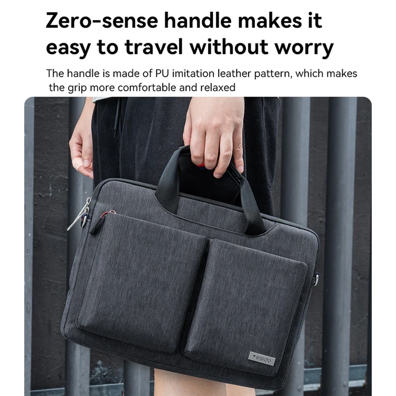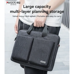 کیف Yesido WB48 با طراحی مدرن و مینیمال خود، ظاهری شیک و حرفهای دارد که مناسب استفاده روزمره و محیطهای کاری است. رنگ خاکستری کلاسیک آن با هر سبک لباس و محیط کاری سازگار است. جزئیات لوکس مانند دستههای PU چرمی و لوگوی فلزی، حس کیفیت بالا و استایل حرفهای را منتقل میکند.