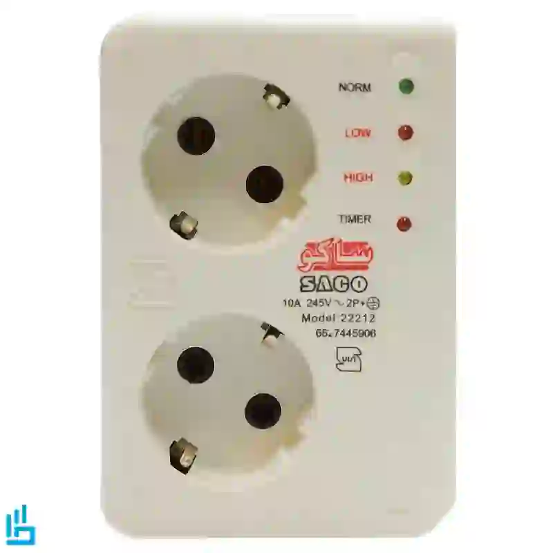 زمان تاخیر هوشمند و قابل تنظیم محافظ برق کامپیوتر صوتی تصویری 2 خانه کلیدار ارت دار ساکو Saco 22212