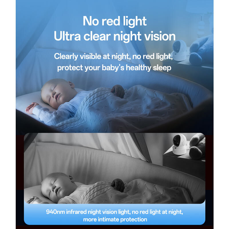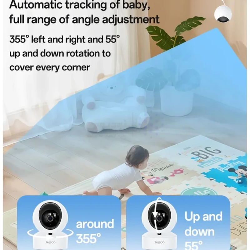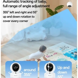 قابلیت چرخش 355 درجه افقی و تنظیم عمودی باعث میشود تقریباً تمام فضای اتاق کودک تحت پوشش قرار بگیرد. این ویژگی مخصوصاً زمانی کاربردی است که کودک در حال حرکت باشد و والدین بخواهند بدون جابهجایی فیزیکی دوربین، زاویه دید را تغییر دهند.
