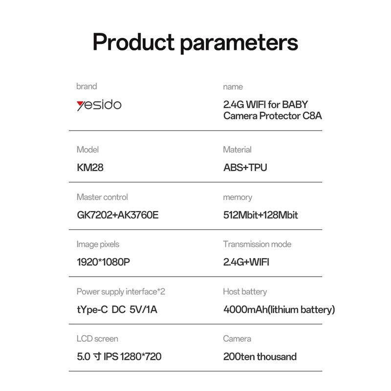 دوربین مراقبت از کودک یسیدو KM28 با طراحی رومیزی و بدنهای از جنس ABS و TPU ساخته شده که هم سبک است و هم در برابر ضربههای احتمالی مقاومت مناسبی دارد. ابعاد متعادل و وزن استاندارد دستگاه باعث میشود بهراحتی روی میز، کمد یا کنار تخت کودک قرار گیرد بدون اینکه فضای زیادی اشغال کند.