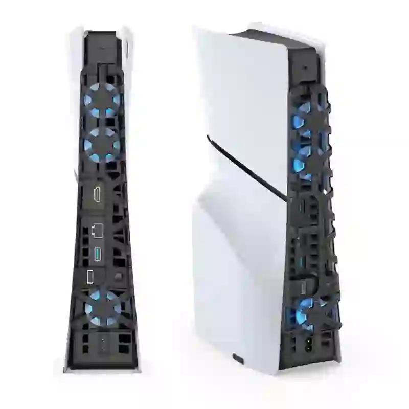 ابعاد جمع‌وجور و باریک فن باعث می‌شود که فضای زیادی روی میز بازی شما اشغال نشود و بتوانید به راحتی آن را کنار کنسول قرار دهید. طراحی باریک همچنین به زیبایی و هماهنگی ظاهری با PS5 Slim کمک می‌کند.
